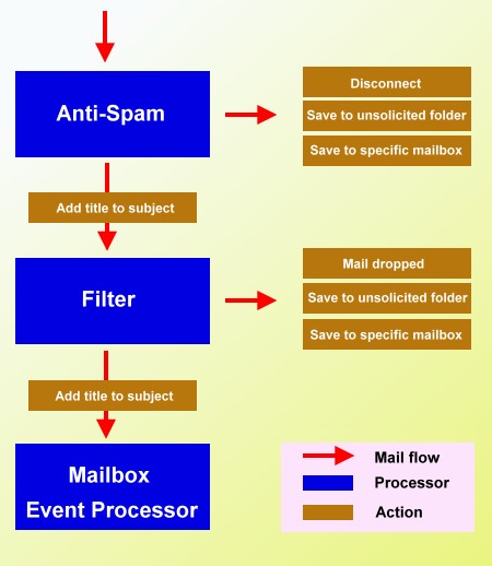 在廣告信處理程序之後也可以搭配過濾器及事件處理器, 其處理方式為以下簡圖所示.