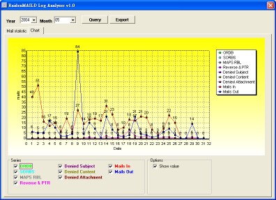 點選年份及月份, 按 Query 就能產生當月的統計列表及圖表.