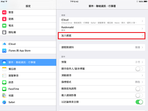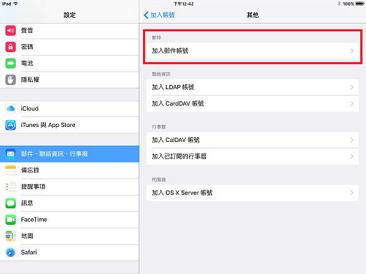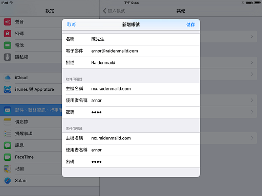 以下用圖解說明如何設定 Apple 手機的 POP 郵件帳號, 此範例用的是 iOS 8.0 的 ipad2 .