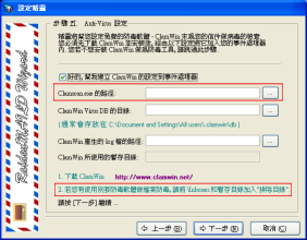 此頁面供您設定maild 的事件處理器去執行 ClamWin 來掃瞄信件中是否有病毒(非必要設定).